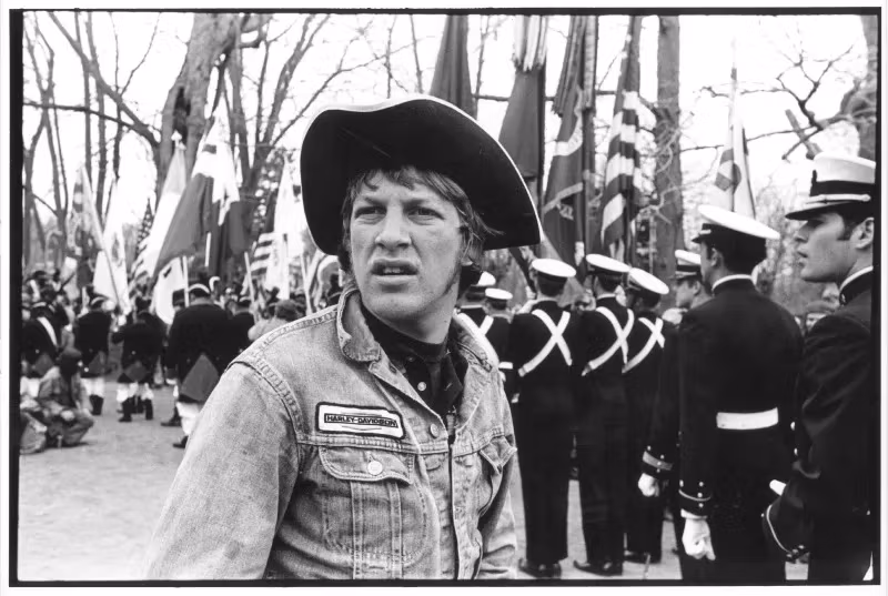 Man i trehörningshatt vid tvåhundraårsfirandet, juli 1975; Diana Mara Henry, https://credo.library.umass.edu/view/full/muph051-s01a-i00035